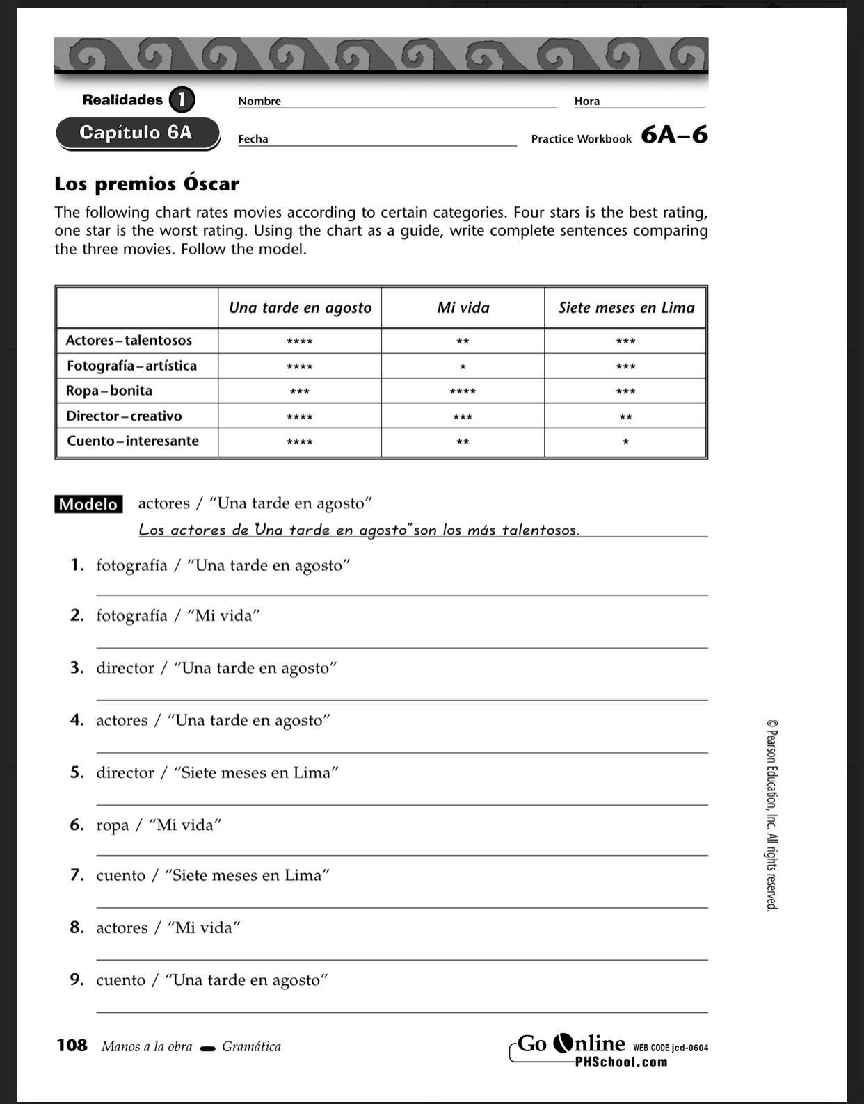 1. Tarea due today. WB 6A-1 to WB 6A-7. Submit to google classroom today.