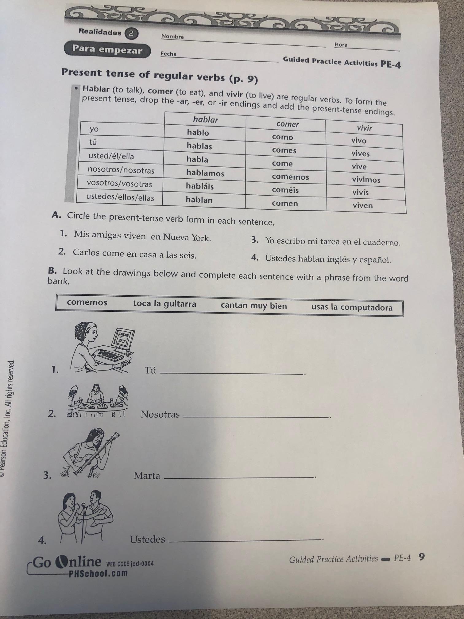 Focus: Present tense verbs GPA PE-4. A and B. ( see attachment) Write out A and B.